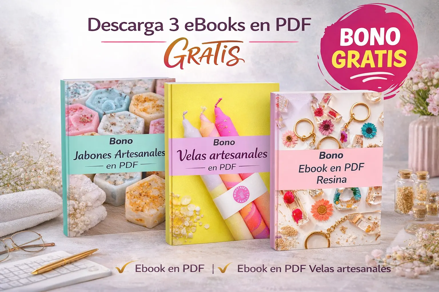 Bono #4: guía en PDF de velas, jabones y resina [$20 USD]